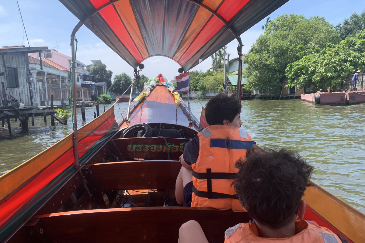 Bangkok est une cité bouillonnante avec un patrimoine culturel immense, mais cumuler les visites de temples et de palais n’est pas forcément adapté à un voyage avec des ados. Je les emmène donc découvrir une autre facette de la capitale thaïlandaise, lors d’une balade en longtail boat. Ils sont impatients ! Le moteur ronronne et nous glissons alors sur les khlongs, ces canaux qui irriguent la ville. Ils observent les habitants qui lavent leur linge sur les rives ou qui cuisinent depuis leur maisons en bois, les bonzes qui sortent des temples plus intimistes, les enfants qui jouent en riant. L’air est chaud et humide, avec des odeurs d’encens et de riz qui flottent. Nous prenons des photos d’un immense Bouddha doré puis d’un petit chat égaré le long d’un canal. Ce Bangkok traditionnel les surprend : calme, authentique, loin des gratte-ciels.